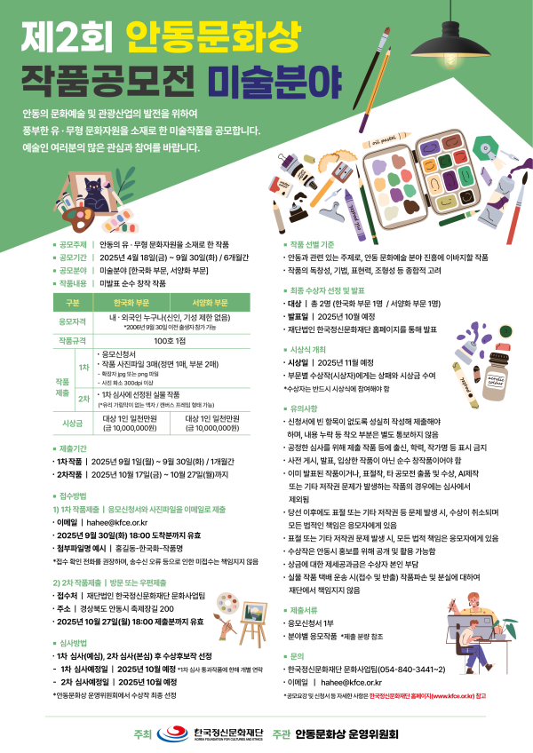 공모분야 : 미술분야(한국화 부문, 서양화 부문) / 작품규격 : 1001
