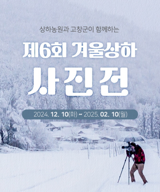 24년 제6회 겨울상하 사진전 공모분야 사진/영상 접수기간2024.12.10 ~ 2025.02.10 D+365 종료 참가자격 제한없음 주최상하농원 1등상금(상품)200만원~499만원 홈페이지 바로가기 첨부파일 다운로드 유의사항 ※본 내용은 참고 자료로 내용의 오류와 변동에 대해 책임지지 않습니다. (오류 및 변동 신고는 상단의 '제안/오류' 신고를 통해 해주십시오.) ※주최사 사정에 따라 일정 및 내용이 변경될 수 있으니 주최사 홈페이지 등을 통해 관련 안내를 수시로 확인하시기 바랍니다. 상세내용 ■ 제목24년 제6회 겨울상하 사진전 ■ 기간24.12.10(화) ~ 25.02.10(월)까지 시상식 : 2025년 3월 이내 상하농원에서 시행 예정 (수상자 개별 통지 및 홈페이지 공지) ■ 참가자격상하농원 입장객 누구나 ■ 참여방법 / 접수방법<공모 주제> - 상하농원의 겨울 <제품 규격 및 출품 조건> - 최대 2점 이하의 디지털 사진 제출 - A3(297x420mm) 크기 이하의 실물사진 or 10MB 이하 디지털 jpg 파일 - 2024년 12월 10일 이후 촬영본에 한함 (미준수시 수상 취소) - 제출 시 파일명 [출품자 이름_작품명] <접수 방법> - 상하농원 공식 구글폼으로 접수 - forms.gle/mqULM3njW7ACyrGn9 ■ 시상내용 / 혜택 - 대상(고창군수상) : 1명 - 300만원 + 스위트룸 숙박권 - 최우수상 : 1명 - 100만원 + 패밀리룸 숙박권 - 우수상 : 2명 - 30만원 + 테라스룸 숙박권 - 장려상 : 10명 - 10만원 + 글램핑 숙박권 ■ 유의사항 - 포토샵 등 편집프로그램으로 과도하게 조작, 왜곡, 합성된 사진 불가 ■ 문의자세한 사항은 홈페이지의 상세페이지 확인 가능합니다. ( 문의 1522-3698 ) 목록