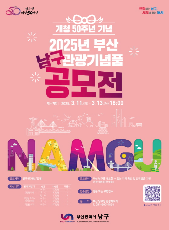개청50주년 기념 2025년 부산 남구 관광기념품 공모전 공모분야 기획/아이디어/마케팅, 디자인/캐릭터, 기타분야 접수기간2025.03.11 ~ 2025.03.13 D+337 종료 참가자격 제한없음 주최부산 남구 1등상금(상품)100만원~199만원 홈페이지 바로가기 첨부파일 다운로드 유의사항 ※본 내용은 참고 자료로 내용의 오류와 변동에 대해 책임지지 않습니다. (오류 및 변동 신고는 상단의 '제안/오류' 신고를 통해 해주십시오.) ※주최사 사정에 따라 일정 및 내용이 변경될 수 있으니 주최사 홈페이지 등을 통해 관련 안내를 수시로 확인하시기 바랍니다. 상세내용 ■ 제목개청50주년 기념 2025년 부산 남구 관광기념품 공모전 ■ 기간 - 접수기간 : 2025. 3. 11.(화) ~ 3. 13.(목) 18:00까지 - 수상작 발표 : 2025. 4. 4.(금) 예정 / 구 홈페이지 공고 및 개별 통보 ■ 참가자격 - 대한민국 국민 누구나 - 대한민국을 소재지로 하는 상품개발, 제조가능 사업자 또는 법인 ■ 참여방법 / 접수방법 ❍ 공모주제 : 국·내외 관광객 및 주민이 구매 가능한 부산 남구를 대표할 수 있는 지역 특성 및 상징성을 가진 상품 제작 ❍ 공모대상 : 부산 남구를 대표하는 관광기념품 (완제품) - 우리 구의 관광지 등 고유특성을 감각적 독창적으로 반영한 작품 - 개청 50주년을 상징할 수 있는 디자인을 반영한 작품 - 상품화 및 유통 판매 가능한 공산품, 공예품, 패션, 식료품 및 기타 잡화 제품 - 관광객이 구매하고 싶은 매력적이고, 실용적인 관광기념품 ❍ 응모제한 ▶ 양산 가능한 제품만을 공모대상으로 하며 입상 후에도 응모제한 사유에 해당되는 경우 입상 취소함 - 저작권, 상표권, 특허권 등과 관련하여 법적 분쟁의 소지가 있는 제품 - 국내외에 이미 상품화된 제품의 유사 제품 및 모방품 - 보관․운반이 곤란하여 관광기념품으로의 상품화가 어려운 작품 - 타 공모전에 출품하여 입상한 제품 - 주문 제작(OEM)하는 하청업체는 원 주문자의 제품을 출품할 수 없음 - 부패 및 변질의 위험이 있어 기념품으로 부적절한 제품 - 그 밖에 응모에 부적절하다고 판단되는 제품 등 ※ 기존의 상품 또는 타인의 아이디어를 모방한 내용을 출품하였을 경우 발생하는 모든 피해에 대한 책임은 출품자 본인에게 있음. ❍ 접수방법 : 방문접수 또는 우편접수 - 우편접수 : 2025. 3. 13. (목) 18:00 도착분까지 접수 (부산 남구 못골로19, 남구청 5층 관광체육과) ※ 우편 접수 시, 반드시 우편제출 확약서를 동봉해야 함. ❍ 제출서류 - 출품작품 - [서식 1] 개청 50주년 기념, 2025년 부산 남구 관광기념품 공모전 참가신청서 - [서식 2] 출품작 설명 및 상품화 계획서(사진 포함) - [서식 3] 개인정보 수집·이용·제공동의서 - [서식 4] 관광기념품 수상작 이용 동의서 - [서식 5] 우편제출확약서(우편 제출인 경우) - [서식 6] 위임장(대리 접수 및 반환시) - 식품품목제조보고서(식품인 경우 반드시 제출) - 사업자등록증 사본(업체에 한함) ❍ 접수 시 유의사항 - 본인 직접 접수 및 본인 직접 반출 원칙, 타인이 대리 접수 및 대리 반환 시 위임장 제출 필요 - 파손의 정도가 심한 부적합한 작품의 경우 접수하지 않으므로 제품이 망실·파손되지 않도록 포장에 주의 - 작품 이외의 판넬, 장식소품, 마네킹 등은 접수받지 않음 ❍ 출품조건 - 개별 작품 크기: 가로 30cm×세로 30cm×높이 30cm 이내 - 출품자의 판매 희망가(부가세 포함) 표기 - 판매 희망가(부가세 포함) 부문별 단품 또는 세트 ▷ 판매가 부문 : 2만원 이하 / 2만원 초과 ~ 5만원 이하 / 5만원 초과 - 출품수량: 판매가 부문별 1인당(1업체당) 출품 수 3작품 이내 ▷ 2인 이상 공동 출품자일 경우 대표 1인에게만 상장 지급 및 시상 수여 ▷ 수저 세트(숟가락, 젓가락), 장신구 세트(목걸이, 귀걸이, 팔찌) 등과 같이 필수 세트 품목이거나 실제 한 묶음으로 판매되는 세트 작품은 1점으로 간주함 - 식품류에 해당하는 경우, 출품 시‘식품품목제조보고서’제출 필수이며, 심사 단계에서 심사위원 맛 평가를 위해 시제품 제작이 가능해야 함. - 세트 상품의 경우 단독으로 판매 가능한 개별 제품으로 구성 - 전시 중 변질 및 파손 우려가 있는 작품은 안전장치를 할 것 - 출품작이나 출품작 주변장치에 출품자에 관한 사항을 표시할 수 없음 (성명, 업체명, 기타 정보 등) ■ 시상내용 / 혜택시상내역 : 총9작품(시상금 500만원) 판매(희망)가상훈시상금작품수총액2만원이하최우수100만원1100우 수60만원160장 려20만원4802만원 초과~5만원 이하최우수100만원1100우 수60만원1605만원 초과최우수100만원1100계9500 ※ 입상 적격 작품이 없는 경우 시상 내용을 변경하거나, 시상하지 않을 수 있음 <추가 입상 특전> ❍ 내‧외빈 선물 등 부산 남구 관광 기념품으로 활용 ❍ 오륙도 해파랑길관광안내소 전시판매대에 진열·판매 기회 제공 ■ 유의사항<출품 작품 반환> ❍ 입상작품 - 입상작은 전시 등을 위해 반환하지 않으며, 부산 남구에 귀속됨 ❍ 낙선작품 - 반환기간 : 2025. 4. 7.(월) ~ 2025. 4. 10.(목) / 4일간(09시∼18시) - 반환장소 : 부산남구청 관광체육과 관광마케팅팀(5층) - 반환방법 : 직접 방문(신분증 지참, 대리인 방문 시 위임장 및 신분증 지참) ※ 해당기간 내 찾아가지 않을 경우 폐기 처리되