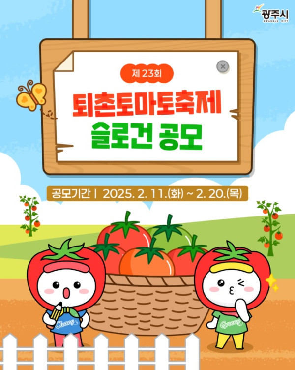 제23회 퇴촌토마토축제 슬로건 공모 공모분야 네이밍/슬로건 접수기간2025.02.11 ~ 2025.02.20 D+368 종료 참가자격 제한없음 주최경기도 광주시 1등상금(상품)100만원 이하 홈페이지 바로가기 첨부파일 다운로드 유의사항 ※본 내용은 참고 자료로 내용의 오류와 변동에 대해 책임지지 않습니다. (오류 및 변동 신고는 상단의 '제안/오류' 신고를 통해 해주십시오.) ※주최사 사정에 따라 일정 및 내용이 변경될 수 있으니 주최사 홈페이지 등을 통해 관련 안내를 수시로 확인하시기 바랍니다. 상세내용 ■ 제목제23회 퇴촌토마토축제 슬로건 공모 ■ 기간 - 공모기간 : 2025. 2. 11.(화) ~ 2. 20.(목) - 당첨자발표 : 2025. 3월중 개별통지(당첨자 발표 기간은 변동될 수 있음) ■ 참가자격누구나 참여 가능(1인당 최대2개) ■ 참여방법 / 접수방법이메일 접수 (※ 유선 접수 불가, 서식 붙임 참고) - 접수처 : 퇴촌면행정복지센터[wjs6014@korea.kr ] ■ 시상내용 / 혜택 - 1등 당선작(1명) : 상품권 30만원 - 2등 최우수작(1명) : 상품권 10만원 - 3등 우수작(2명) : 상품권 5만원 목록