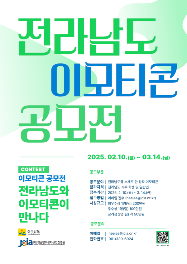 전라남도 이모티콘 공모전 공모분야 웹툰/포스터/미술, 디자인/캐릭터 접수기간2025.02.10 ~ 2025.03.14 D+387 종료 참가자격 제한없음, 지역한정 주최전라남도, (재)전남정보문화산업진흥원 1등상금(상품)200만원~499만원 홈페이지 바로가기 첨부파일 다운로드 유의사항 ※본 내용은 참고 자료로 내용의 오류와 변동에 대해 책임지지 않습니다. (오류 및 변동 신고는 상단의 '제안/오류' 신고를 통해 해주십시오.) ※주최사 사정에 따라 일정 및 내용이 변경될 수 있으니 주최사 홈페이지 등을 통해 관련 안내를 수시로 확인하시기 바랍니다. 상세내용 ■ 제목전라남도 이모티콘 공모전 ■ 기간 - 접수기간 : 2025. 2. 10.(월) ~ 3. 14.(금) 14:00까지 ※ 1인(팀) 당 출품 수 제한 없으나, 1인(팀)당 1개 수상으로 제한 ※ 출품신청서 1부당 1개 창작물 제출 필수 ■ 참가자격 학생 및 이모티콘 창작에 관심있는 일반인 (전라남도민 대상) ■ 참여방법 / 접수방법<공모분야> 전라남도를 소재로 한 창작 이모티콘 (정지형 또는 모션형) <제출서류> (1) 출품신청서 (2) 참가자 서약서 (3) 개인정보 수집・이용・제3자 제공 동의서(미성년자의 경우 법정대리인 동의 必) (4) 작품 소개서 (5) 이모티콘 디자인 시안 24종 (6) 참가자격 증빙자료(주민등록등본, 재·휴학증명서) <제출 요건> - 전라남도 지역 소재를 활용한 순수 창작 이모티콘이여야 함 - 창작물이 신청하는 개인 또는 단체의 고유의 저작물이어야 함 - 창작물이 어떠한 형태로든 상업화 되지 않아야(원작이 있는 경우 출품 불가) 하며 기 발표(온오프라인 매체 게재, 플랫폼 등록 등)되어 수상 및 지원, 수익화된 작품이 아니어야 함 <파일 형식> 연번구분파일 형식해상도컬러모드이미지 용량이미지 사이즈기타1정지형 (24개)png72dpi 이상 RGB각 1MB 이하740x640px-2모션형(24개)gif72dpi 이상 RGB각 1MB 이하740x640px재생시간 최대3초, 100프레임 ※ 네이버 OGQ 크리에이터 스튜디오 기준 <접수방법> 이메일 접수(heejae@jcia.or.kr) - (신청서류) 진흥원 홈페이지를 통해 신청서류(공통) 양식 다운로드 - (제출형식) 공통서류를 포함한 모든 파일은 압축파일(ZIP파일) 1개 파일로 제출 ㆍ 파 일 명 : ‘전라남도 이모티콘 공모전_신청자명(정지형/모션형)’ 예시 : 전라남도 이모티콘 공모전_홍길동(정지형) ㆍ 제출순서 : ①출품신청서 ②참가자 서약서 ③개인정보 수집ㆍ이용ㆍ제공 동의서 ④작품 소개서 ⑤이모티콘 디자인 시안 24종(압축파일) ⑥참가자격 증빙자료 ⇒ 제출순서에 따라 파일별 번호를 매긴 후 압축파일로 압축하여 1개 파일로 제출 <신청서류> 구분연번제출서류제출형식비고필수 (지정서식 준용)1 출품신청서 PDF서명날인 必2 참가자 서약서PDF서명날인 必3 개인정보 수집・이용・제3자 제공 동의서PDF서명날인 必4 작품 소개서한글(hwp) 또는 PDF-5 이모티콘 디자인 시안 24종ZIP규격 준용 必6 참가자격 증빙자료 (전남 소재)PDF- ※ 이모티콘 규격 및 파일 형식[파일 형식] 해상도 72dpi 이상, 컬러모드 RGB, 이미지 용량 각 1MB 이하, 프레임 수 각 100 이하 [이미지 사이즈] 740x640px 24장 (PNG 또는 GIF)* 수상작은 네이버 OGQ 크리에이터 스튜디오 등록 예정으로, 추후 등록에 필요한 메인이미지(마켓에서 보여질 대표 이미지), 탭 이미지(스티커 선택 시에 보여질 작은 사이즈 이미지) 추가 제출 필요** OGQ 크리에이터 스튜디오 심사 결과에 따라 추가 보완을 요청할 수 있음 *** 필수제출서류 누락 및 작성요령(지정서식 사용), 분량 등을 준수하지 않을시 평가에서 제외됨. 필히 준용 요망 ■ 시상내용 / 혜택 상 명시상수시상내역상금훈 격최우수상1명(팀)상장 및 상금200만원전남정보문화산업진흥원장우수상1명(팀)상장 및 상금100만원전남정보문화산업진흥원장장려상2명(팀)상장 및 상금각 50만원전남정보문화산업진흥원장 ■ 유의사항 ○ 응모자는 본인의 명의로, 실명(필명 기재 불가)으로 출품하는 것을 원칙으로 함 ○ 출품은 개인 및 공동(팀) 출품이 가능함 - 공동 출품작이 수상작이 된 경우 대표작가가 수상권(상장 및 상금 수여)을 가짐 - 공동 출품작의 수상 이후 문제에 대해 주관기관의 책임은 없음 ○ 신청 관련하여 파일명 형식 및 필수제출 서류 작성 형식을 준수해야 함 ○ 제출 기한을 초과하여 제출한 작품에 대해서는 접수하지 않음 ○ 제출서류 등에 허위기재 또는 기재 착오, 제출기한 내 필수제출 서류 미제출, 제출한 작품파일의 오류에 따른 불이익은 응모자 본인의 책임으로 함 ○ 공모기간, 심사 및 시상 등의 일정은 운영상황에 따라 변동될 수 있으며 본 공모의 신청에 있어 안내사항 미숙지로 인하여 발생하는 불이익은 모두 출품자의 책임임 ○ 모든 출품작은 국내외 미발표된 창작품에 한하며 아래 사항에 해당될 경우 평가에서 제외 및 수상 후에라도 확인될 경우 수상 취소 및 시상금 반환될 수 있음. 또한 이로 인한 법적 문제 발생시 민형사상의 법적인 책임과 비용 부담은 출품자에게 있음 - 기존 원작이 존재하는 작품 - 기존 작품을 단순 각색하거나 개작한 작품 - 평가위원회가 표절 작품(표절 부분이 대부분) 및 도용, 모방작으로 판단한 작품 - 제작사 등에 매도 계약된 작품(진행 중 포함)이거나 집필 
