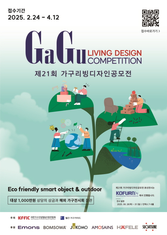 제21회 가구리빙 디자인 공모전 공모분야 디자인/캐릭터, 기타분야 접수기간2025.02.24 ~ 2025.04.12 D+358 종료 참가자격 제한없음 주최대한가구산업협동조합연합회, 월간가구가이드 1등상금(상품)500만원~1천만원 홈페이지 바로가기 첨부파일 다운로드 유의사항 ※본 내용은 참고 자료로 내용의 오류와 변동에 대해 책임지지 않습니다. (오류 및 변동 신고는 상단의 '제안/오류' 신고를 통해 해주십시오.) ※주최사 사정에 따라 일정 및 내용이 변경될 수 있으니 주최사 홈페이지 등을 통해 관련 안내를 수시로 확인하시기 바랍니다. 상세내용 ■ 제목제21회 가구리빙 디자인 공모전 ■ 기간 - 접수기간 : 2025년 2월 24일(월) ~ 2025년 4월 12일(토) 23시 59분 - 예선합격발표 : 5월 14일(수) - 사전설명회 : 7월 초 예상 - 실물작품접수 : 8월 27일(수) - 전시회 : 8월 28일(목) ~ 8월 31(일) - 본선심사 : 8월 28일(목) - 시상식 : 8월 29일(금) ■ 참가자격 제한없음 ※ 개인 또는 3인 이하 팀 ■ 참여방법 / 접수방법◯ 주제 : Eco Friendly Smart Object & Outdoor <접수분야>침대, 소파, 식탁, 거실가구, 공간소품, 아트퍼니처 등 (제한없음) <제출 내용 및 제출 파일 형식>① 출품신청서 (HWP파일)② 작품 패널 (A2 사이즈 - PDF파일)③ 작품 설명서 (5페이지 내외 - PDF파일)④ 작품 사진 (렌더링 이미지로 대체 가능 – JPG파일) ※ 제출 서류들의 양식은 홈페이지 공지글에서 다운로드 ※ 서류 미비・허위 기재의 경우 심사에서 제외될 수 있으며, 중복제출 시 마지막 제출자료를 기준으로 합니다. <접수방법>홈페이지 접수 (회원가입 후 접수가능) ※ 참가신청 바로가기 : https://www.gagudesign.or.kr/21st_apply ■ 시상내용 / 혜택 - 대상 : 1개 팀(인) / 상금 700만원+해외 가구전시회 참관권(1인) - 금상 : 1개 팀(인) / 상금 200만원 - 은상 : 2개 팀(인) / 상금 100만원 - 동상 : 1개 팀(인) / 상금 50만원 - 인기상 : 1개 팀(인) - 입선 : 30개 팀(인) / 제작지원금 15만원 ※ 팀 작업물이 대상 수상 시 부상인 유럽 참관권은 1인에 한하여 제공합니다. <후원사 제품 지원> 입선자 대상 실물 작품 제작 시 희망자에 한 해 하드웨어 제품 지원 ■ 유의사항 - 입선에 선정된 분들은 『한국국제가구 및 인테리어산업대전 (코펀)』 에 본선 심사를 위하여 실물 작품을 전시하여야 합니다. 미 전시 시, 입선이 취소됩니다. - 본선 심사 및 시상식에 반드시 1명 이상은 상주하여야 합니다. (미참여 시 본선 심사에 불이익을 받을 수 있으며, 이에 대한 책임은 주최 측에서 지지 않습니다.) - 작품 접수 시 허위로 기재된 내용이 있거나 그 외 부적절하다고 판단되는 경우, 심사 대상에서 제외되며 입상 역시 취소될 수 있습니다. - 공정한 심사를 위해 심사위원과 심사 점수는 비공개이며, 심사 결과에 대한 이의제기 및 관련 문의는 받지 않습니다. - 출품작은 국내외에 발표된 적 없는 순수 창작품이어야 하며, 아래의 경우 출품이 제한됩니다. (출품 제한 : 국내외 타 공모전에 출품하여 수상한 경우, 모방 및 표절, 기타 지식재산권 등 법적인 문제가 있는 경우) - 출품작이 저작권 등 타인의 권리를 침해했다고 판단될 경우, 출품 또는 입상이 취소될 수 있습니다. 만약 출품작에 대해 제 3자가 권리침해, 손해배상청구 등 소송 및 이의를 제기한 경우 출품자의 책임으로 해결해야 하며, 주최자 및 후원 기업은 일체 책임을 지지 않습니다. - 수상 후 제한 대상에 해당함이 밝혀지거나 부적격 사유가 발생할 경우 수상이 취소되며, 지급된 상장과 상패 및 상금을 반환하여야 합니다. 모든 법적 책임은 출품자에게 있습니다. - 출품 아이디어 및 제출 자료(디자인 시안, 이미지 등)에 대한 저작권 일체는 출품자에게 있으며, 입선작에 한하여 주최・주관기관이 비영리 목적 저작재산권 및 2차적저작물작성권*을 행사할 수 있습니다. (*저작재산권 및 2차적저작물작성권 : 자료집 발간, DB 구축 및 정보제공 웹서비스, 기타 사업 홍보를 위한 제출자료의 일부 복제, 가공, 인쇄, 배포, 전시, 공중송신 등) - 주최 측 사정에 의하여 공모 일정과 수상 내용에 대한 변동이 발생할 수 있습니다. - 상금은 세금 공제 후 지급됩니다. ■ 문의대한가구산업협동조합연합회 국제협력전시사업팀 전수연 사원 T. 02-2215-9728 E. jsy529@kffic.kr 목록