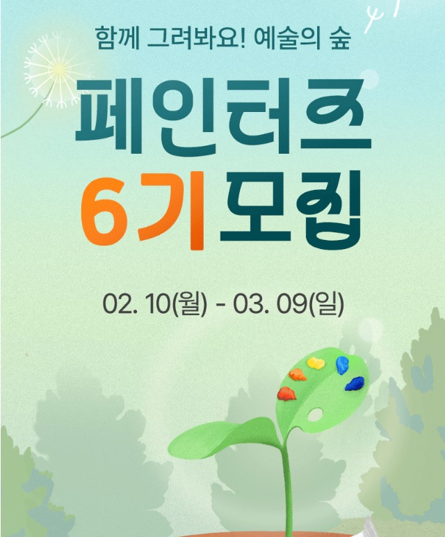 화방넷 페인터즈 6기 모집 접수기간2025.02.10 ~ 2025.03.09 D+392 종료 참가자격 제한없음 주최화방넷 1등상금(상품)기타 홈페이지 바로가기 첨부파일 다운로드 유의사항 ※본 내용은 참고 자료로 내용의 오류와 변동에 대해 책임지지 않습니다. (오류 및 변동 신고는 상단의 '제안/오류' 신고를 통해 해주십시오.) ※주최사 사정에 따라 일정 및 내용이 변경될 수 있으니 주최사 홈페이지 등을 통해 관련 안내를 수시로 확인하시기 바랍니다. 상세내용 ■ 제목화방넷 페인터즈 6기 모집 ■ 기간 - 모집기간 : 2025. 02.10(월) ~ 03.09(일) - 당첨자 발표 : 2025. 03. 14(금) 화방넷 이벤트 공지 / SNS 채널 명단 공개 - 발대식 일정 : 2025.03.21 (금) 오후 2시 *오프라인으로 진행 예정 - 활동기간 : 2025.04.01(화) ~ 09.30(화) ■ 참가자격- 미술컨텐츠 제작에 자신있는 작가님- SNS 활동을 꾸준히 진행 중인 작가님- 재료 활용도가 뛰어난 작가님 ※ 모집인원 : 20명 ■ 활동내용 1. 최소 월 3회 SNS 콘텐츠 업로드 2. 커뮤니티 에디터 활동 3. 페인터즈 작가 인터뷰 ■ 지원방법 - 구글폼을 통해 신청https://docs.google.com/forms/d/e/1FAIpQLScbbxOz3WHpYv4FYb0p7dUwAjf_fp0NcHmYLwlwzgbs4VfUgQ/viewform ■ 참여 혜택- 페인터즈 작가 지원금 50만원- 다양한 브랜드 제품 지원 (총 8개 브랜드 제품 협찬)- 화방넷 홍보 지원- 매월 우수한 활동을 보여준 작가님께 기프티콘 지급- 페인터즈 작가 등급 부여- 페인터즈 수료증 ※ 6개월간 활동한 작가님들 중 한 분을 뽑아 ‘아이패드 프로’ 또는 ‘현금 100만원’ 중 1개의 상품을 드립니다. ■ 유의사항 - 해당 이벤트의 세부내용은 당사 사정에 따라 변동될 수 있습니다. - 혜택 2, 5의 경우 당사 사정에 따라 변동될 수 있습니다. - 페인터즈 활동 자료는 화방넷에 귀속되며 SNS, 블로그 등 마케팅용으로 활용될 수 있습니다. - 중도 포기 및 지정된 활동을 하지 않을 경우 자격이 취소되며, 지급된 혜택이 회수될 수 있습니다. - 페인터즈 활동자료(콘텐츠)를 위해 회원 탈퇴가 불가합니다. - 페인터즈 활동 시 화방넷에서 진행되는 모든 체험단 지원이 불가합니다. ■ 문의 - design@hwabang.net - 홈페이지 게시글 댓글을 통해 문의https://hwabang.net/board/gallery/read.html?no=584639&board_no=22 목록