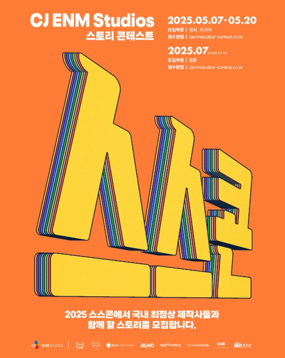 CJ ENM Studios 스토리 콘테스트 (영화, 드라마, 웹툰 시나리오 공모) 공모분야 문학/시나리오, 사진/영상, 웹툰/포스터/미술 접수기간2025.05.07 ~ 2025.05.20 D+322 종료 참가자격 제한없음 주최CJ ENM Studios 스토리 콘… 1등상금(상품)1천만원 초과 홈페이지 바로가기 첨부파일 다운로드 유의사항 ※본 내용은 참고 자료로 내용의 오류와 변동에 대해 책임지지 않습니다. (오류 및 변동 신고는 상단의 '제안/오류' 신고를 통해 해주십시오.) ※주최사 사정에 따라 일정 및 내용이 변경될 수 있으니 주최사 홈페이지 등을 통해 관련 안내를 수시로 확인하시기 바랍니다. 상세내용 ■ 제목CJ ENM Studios 스토리 콘테스트 ■ 기간 - 접수기간 : [드라마/영화] 2025년 5월 7일(수) 오후 2시 ~ 2025년 5월 20일(화) 오후 2시 - 웹툰 접수기간은 2025년 7월 (상세 일정은 5월 중 홈페이지 공지 예정) - 결과 발표 : 2025년 10월말 예정 – 당선자 개별 통보 및 홈페이지 발표 예정 ■ 참가자격제한 없음 (신인, 기성 무관) ■ 참여방법 / 접수방법<응모부문>드라마, 영화, 웹툰 <제출 서류>자유소재의 순수 창작물드라마 - 기획안 1부 (지정 양식, 최대 10매) ※ 작품정보, 캐릭터 소개, 결말이 포함된 회차별 줄거리 필수 포함 - 대본 1, 2회 (최소 8부작 이상, 회당 30~35매 내외)2. 영화 - 기획안 1부 (지정 양식, 최대 5매) ※ 캐릭터 소개, 결말이 포함된 회차별 줄거리 필수 포함 - 시나리오 1부 (러닝타임 100분 내외) <지정 양식> 기획안 양식은 홈페이지 공지글에서 다운로드1. 파일명 : "제출부문_구분_작품제목"의 형식을 준수하여 작성 ※ 제목 또는 표지에 이름, 연락처 등 개인정보 기재 금지 (작성예시) - 드라마_기획안_선재업고튀어, 드라마_대본_선재업고튀어 - 영화_기획안_헤어질결심, 영화_시나리오_헤어질결심 2. 파일형식 : PDF, MS워드(doc), 아래아한글(hwp) 중 택1 3. 지정양식 - MS워드 (A4 기본 여백, 줄간격 1.0, 글자크기 11, 장평 100%) - 아래아한글 (A4 기본 여백, 줄간격 160, 글자크기 11, 장평 100%) ※ 웹툰 상세 제출서류 및 지정양식은 5월 응모일정 공지 시 별도 안내 예정입니다 <접수 방법> - 홈페이지(www.cjenmstudios-contest.co.kr)를 통해 접수 ※ 우편 및 방문 접수는 불가 ■ 시상내용 / 혜택 - 대상 부문 통합 1편 : 5,000만원 - 최우수상 드라마/영화/웹툰 부문별 각 1편 : 3,000만원 - 우수상 드라마/영화/웹툰 부문별 각 2편 : 1,000만원 ※ 당선작 특전 : CJ ENM STUDIOS 소속 제작사와 연계하여 당선작의 개발 기회 제공, 당선작 개발 후 드라마, 영화 형식의 영상 콘텐츠 제작 확정 시, 별도의 인센티브 추가 지급 ■ 유의사항 홈페이지 공고문 참조 목록