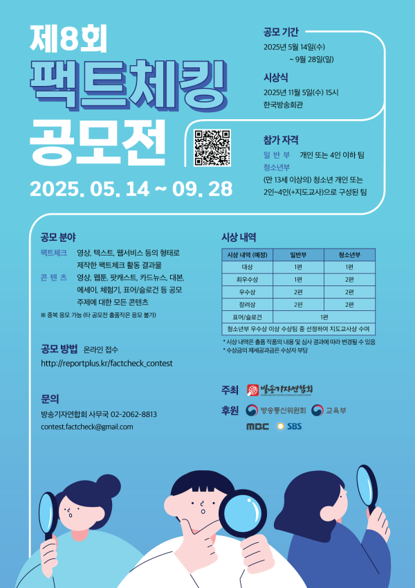 - 팩트체크 부문 영상 또는 텍스트의 형태로 직접 제작한 팩트체크 활동 결과물