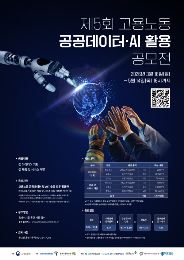 제5회 고용노동 공공데이터·AI 활용 공모전(~5.14.)