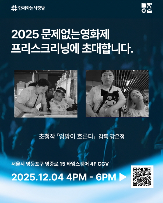 025 문제없는영화제 프리스크리닝에 초대합니다. 접수기간2025.11.26 ~ 2025.12.03 D+64 종료 참가자격 제한없음 주최사단법인 함께하는사랑밭 1등상금(상품)기타 홈페이지 바로가기 첨부파일 다운로드 유의사항 ※본 내용은 참고 자료로 내용의 오류와 변동에 대해 책임지지 않습니다. (오류 및 변동 신고는 상단의 '제안/오류' 신고를 통해 해주십시오.) ※주최사 사정에 따라 일정 및 내용이 변경될 수 있으니 주최사 홈페이지 등을 통해 관련 안내를 수시로 확인하시기 바랍니다. 상세내용 [문제없는영화제] 2025 문제없는영화제 프리스크리닝 <엉망이 흐른다> 관람 초대 안내 안녕하세요. 문제없는영화제 사무국입니다.오는 12월 4일(목) CGV 영등포 타임스퀘어에서 개최되는<2025 문제없는영화제> 프리스크리닝(16:30~18:00) 에 초대드립니다.이번 프리스크리닝에서는 강은정 감독의 단편영화 <엉망이 흐른다>(24분)가 초청작으로 상영됩니다. 본 작품은 휠체어 이용 당사자의 이동 자체가 하나의 ‘사건’이 되는 일상을 섬세하게 담아내며, 우리 곁의 이동권·접근성·일상 속 만남에 대해 잔잔한 질문을 건네는 작품입니다. 상영 후에는 감독과 직접 이야기를 나누는 간단한 GV(감독과의 대화) 도 준비되어 있어 장애·가족·돌봄을 주제로 깊이 있는 공감과 대화를 나누는 시간이 될 것입니다. 목록